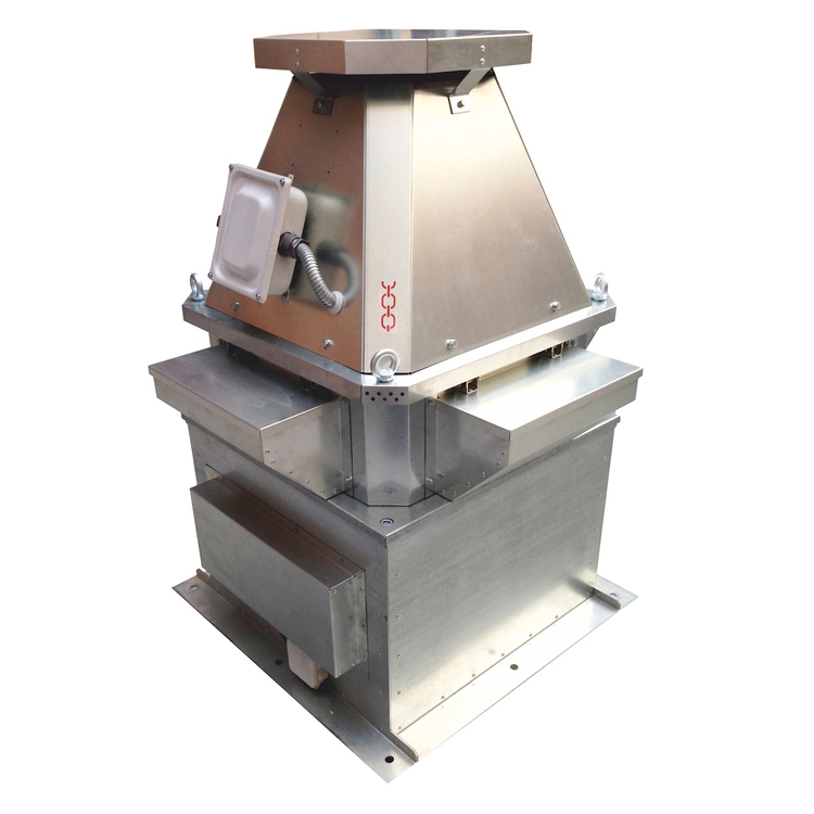 крышный вентилятор, максимальный расход воздуха 7 000 куб. м/ч, частота вращения 3 000 1/мин, максимальный располагаемый напор 1 400 Па, взрывозащищенный, присоединительный размер 660х660 мм, диаметр рабочего колеса: 355 мм, материал корпуса: оцинкованная сталь, монтаж: горизонтальный, степень защиты: IP54
